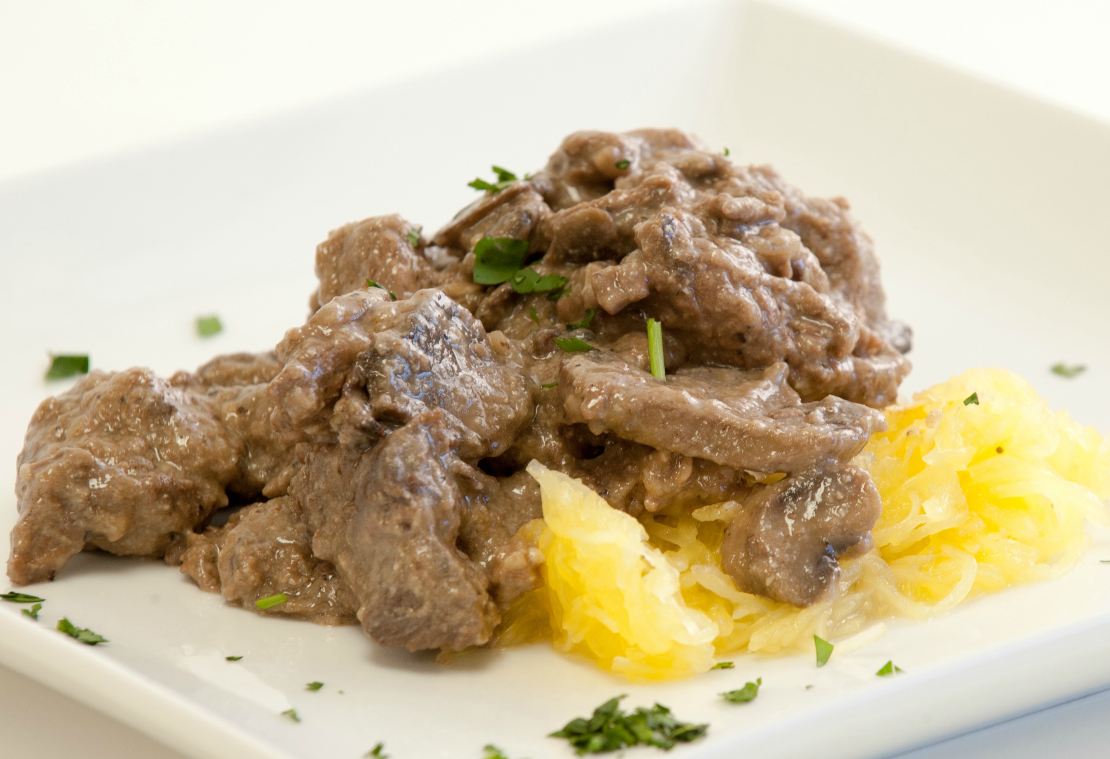 Stroganoff is a sauce traditionally made with sour cream and originates from the colder parts of the world like Russia. Paleo sour cream will do the same thing, made with thin sliced beef on top of mung bean noodles. This dish is sure to take you back to your hamburger helper days and then you will suddenly realize why you don’t eat that stuff anymore. Served with Roasted Broccoli.